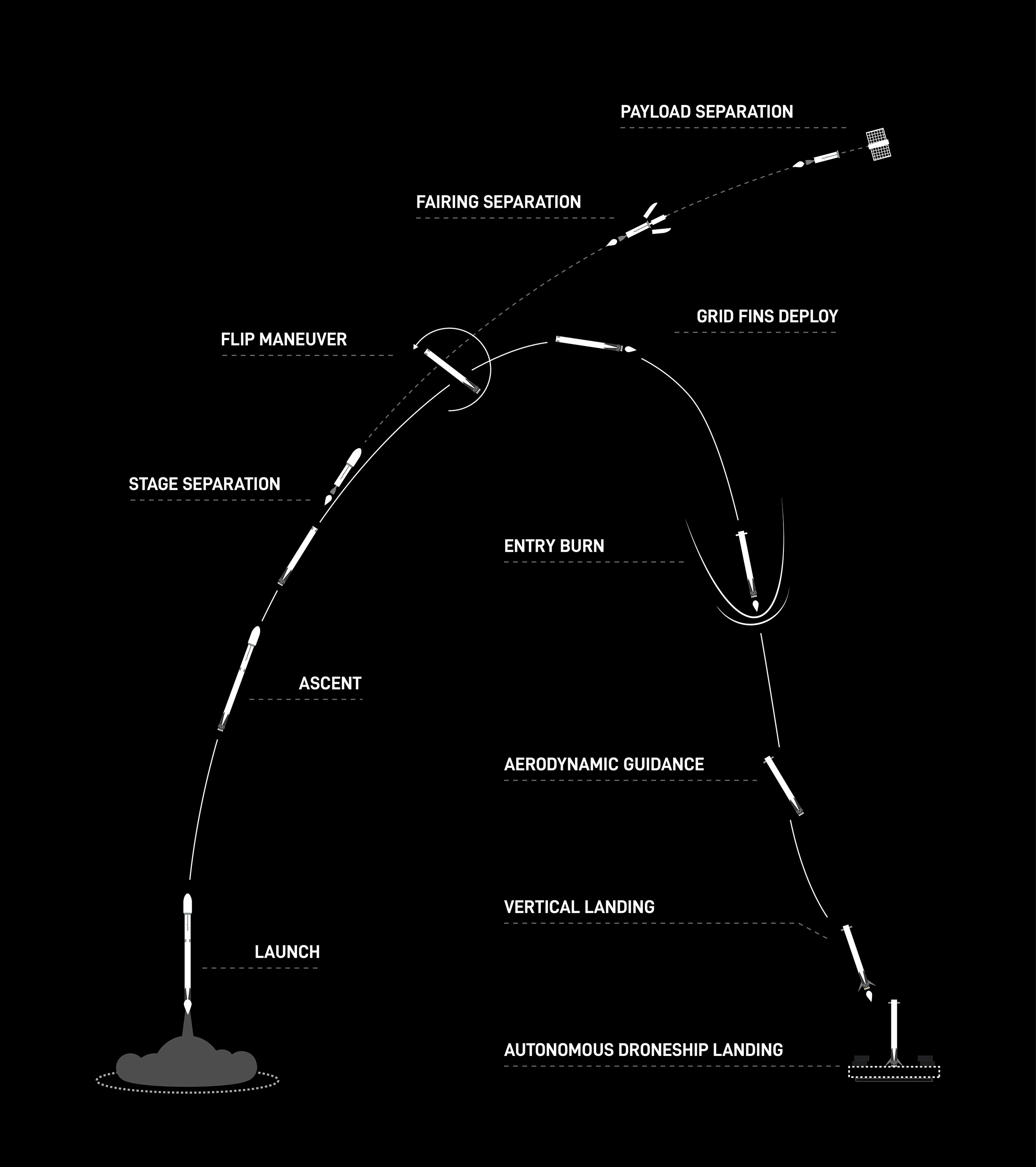 SpaceX’s family of Falcon launch vehicles are the first and only orbital class rockets capable of reflight. Depending on the performance required for the mission, Falcon lands on one of our autonomous spaceport droneships out on the ocean or one of our landing zones near our launch pads.